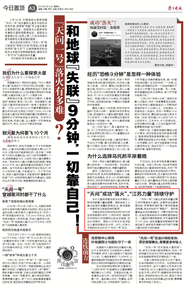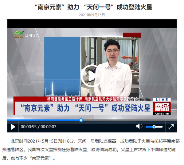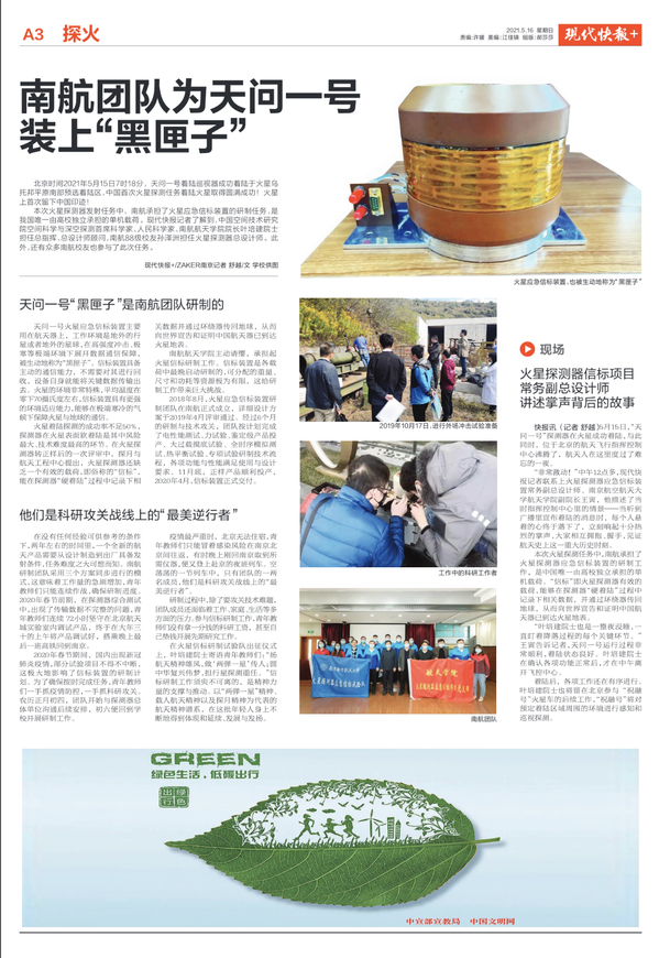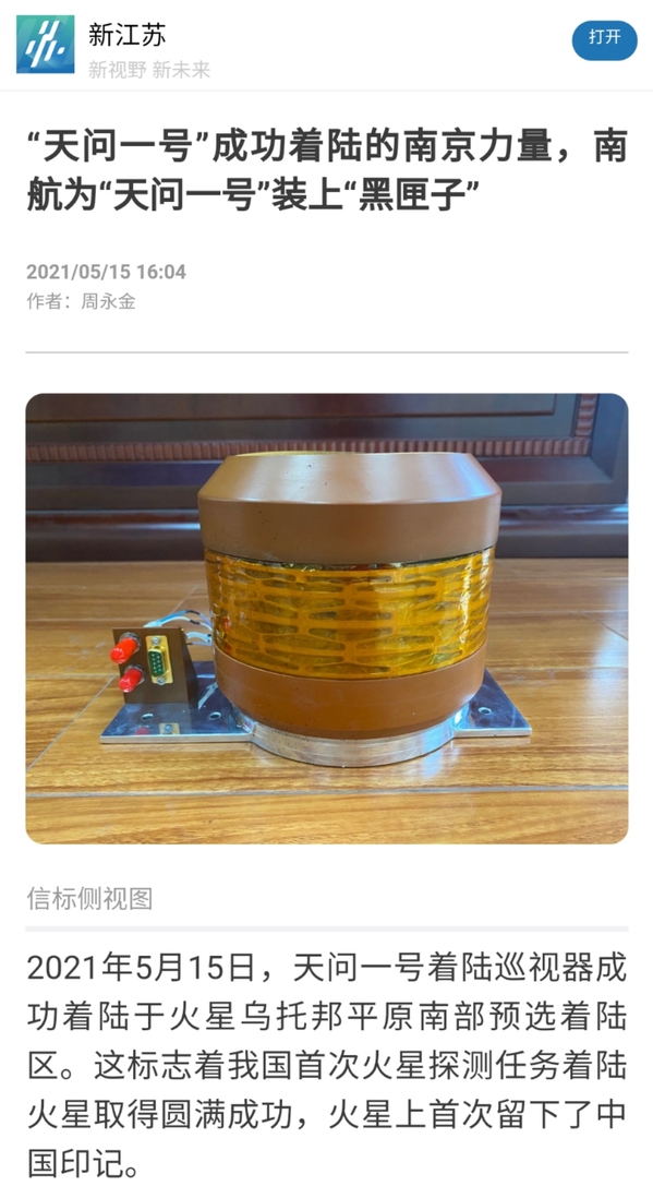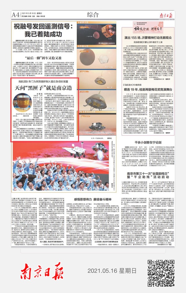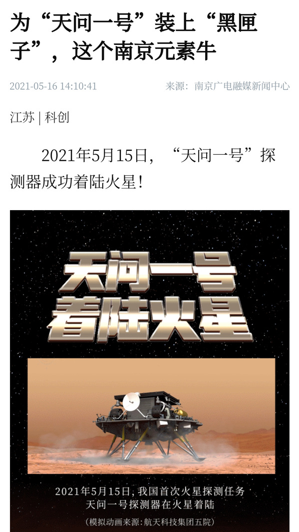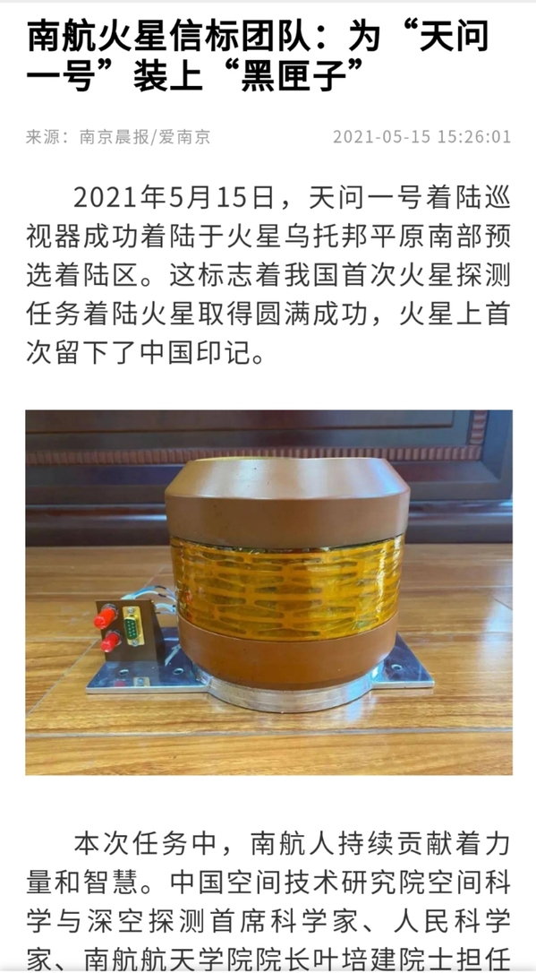 南京日报:南航团队专门为探测器研制火星应急信标装置 天文“黑匣子”就是南京造