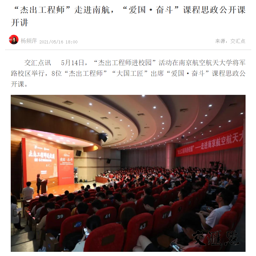 交汇点:“杰出工程师”走进南航,“爱国·奋斗”课程思政公开课开讲