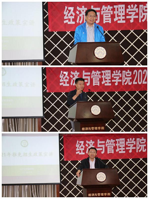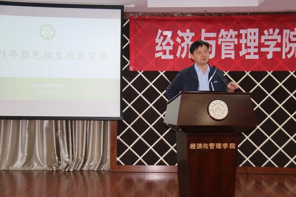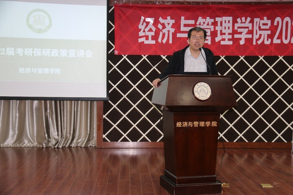 为帮助学生了解我院研究生招生政策,合理规划考研、保研目标,提升学院生源质量,5月20日,经济与管理学院2022届考研、保研政策宣讲会于经管楼A0305成功举办。学院副院长邓晶、谢乃明,管工系系主任米传民、工商系主任谢嗣胜、经济系副主任王建立、年级辅导员及百余名2018级学生参加了本次活动。