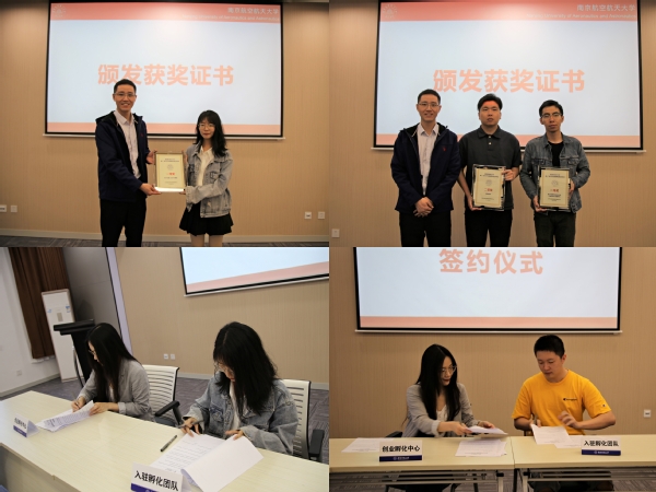 颁奖环节,徐俊珠为通过路演评审的6个项目颁发“第十二批大学生创业孵化项目入园评审会获奖证书”。柯伊代表大学生创业孵化中心与各项目签署创业团队入驻协议。