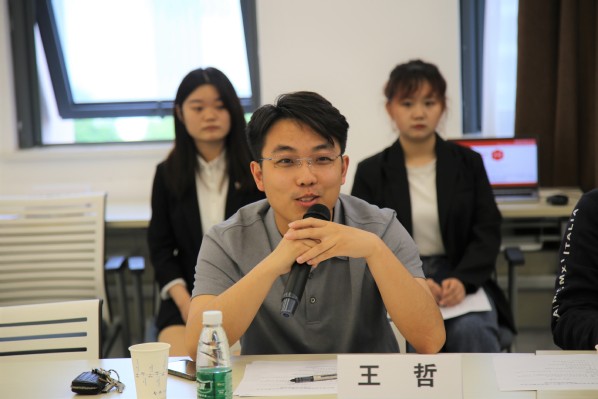 我校在孵企业代表--南京京慧宁文化传播有限公司总经理王哲以个人及公司发展历程为例,就人才保留、团队搭建、市场开拓三点进行分享,并表示未来希望与新一批创业伙伴深入交流、共同发展。