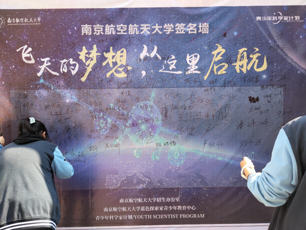 在清江中学“2021年校园科技节”南航专场活动举办的同时,同学们纷纷在南航签名墙上签名并留言:飞天的梦想,从南航启航。祝福所有学子们在即将到来的高考中斩获佳绩,梦想成真。