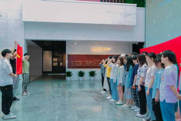 梅园新村纪念馆主要讲述了1946年5月至1947年3月间,以周恩来总理为首的中国共产党代表团在南京与国民党进行了10个月零4天的谈判斗争的历史。在国共南京谈判史料陈列厅的汉白玉浮雕前,面对着党旗,理学院本科生党支部全体党员在支部副书记孙成的带领下重温入党誓词,坚定理想信仰。