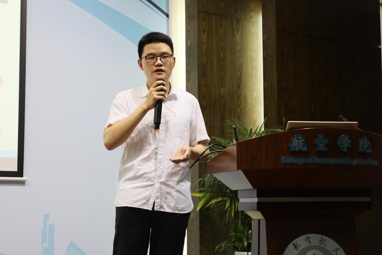 航空学院2018级人机与环境工程专业博士生彭孝天为在场同学做了主题为“博士生学术成果与能力提升”的经验分享。他以“为什么要读博?”“博士毕业后的去向?”两个问题解答了在博士学习期间积累学术成果、提升综合能力的重要性,并在文章、专利、基金项目、学生工作、提升综合素质等方面为博士新生提供了建议。