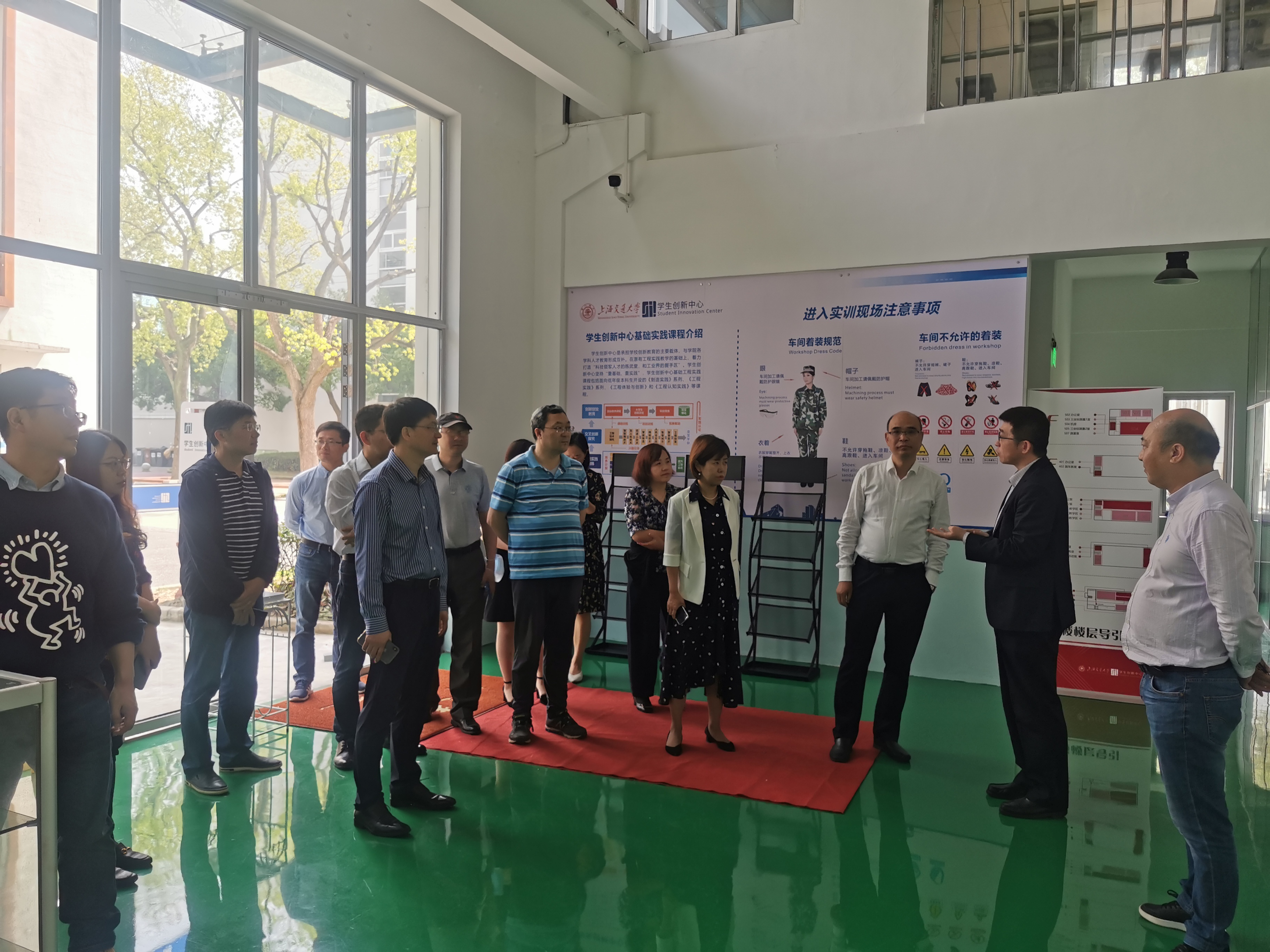 2021年5月25日,公共实验教学部党总支书记张庆、副主任丁岚、工程训练中心主任王化明、计算机基础教学与实验中心主任王立松等一行12人,赴上海交通大学学生创新中心围绕创新实践课程改革与实验室建设等工作进行调研。上海交通大学学生创新中心党总支书记熊振华、副主任仝月荣等热情接待了公共实验教学部教师一行。