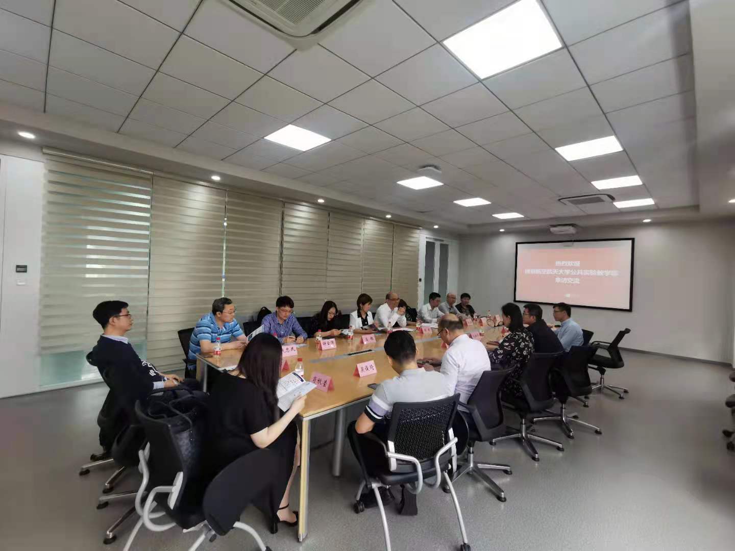 熊振华对学生创新中心的基本情况、建设背景及建设内容进行详细介绍,张庆对公共实验教学部发展理念及建设情况进行了介绍,双方就实践课程改革及学生竞赛指导等内容进行了深入探讨和交流。