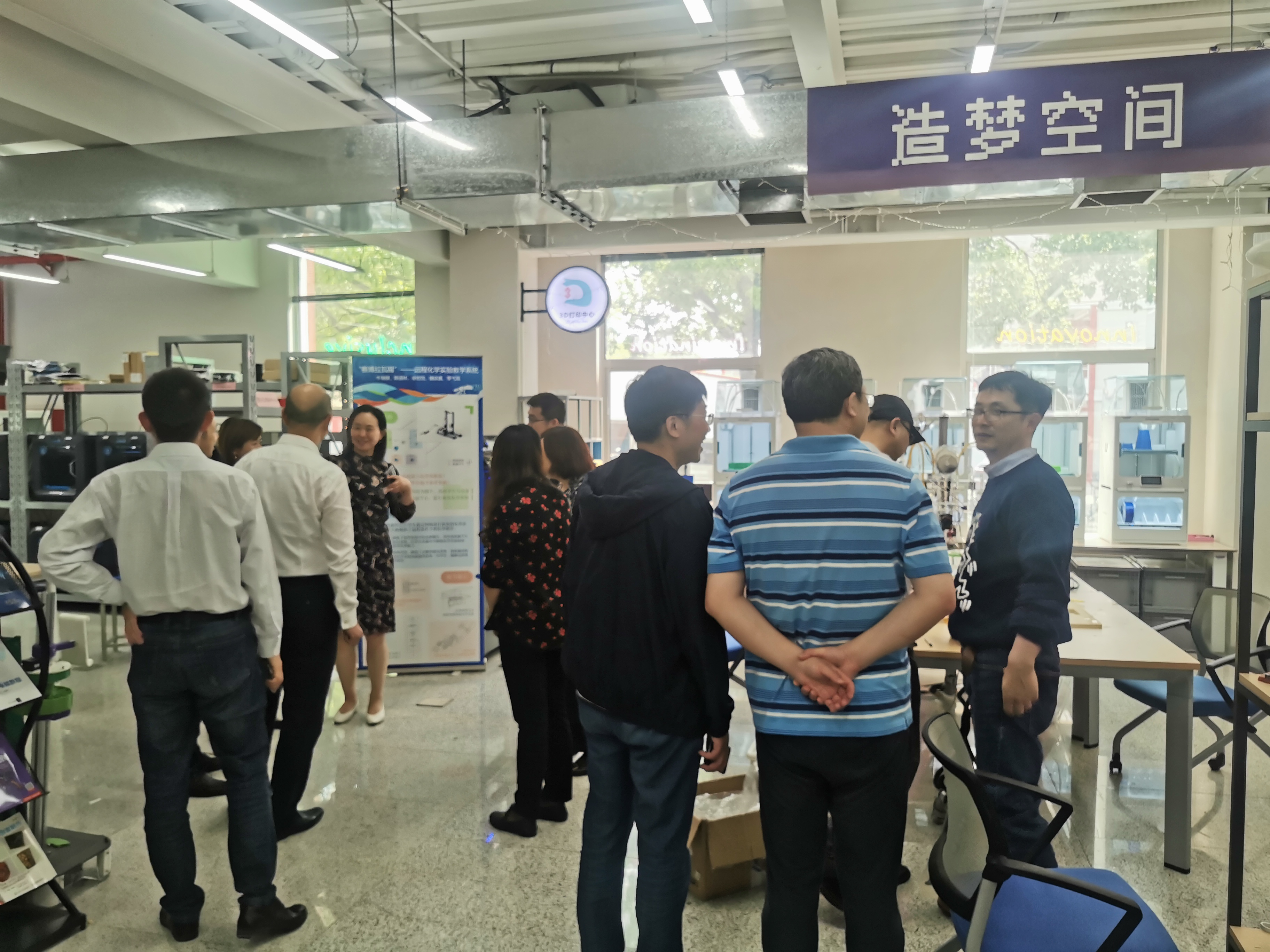 公共实验教学部教师们参观了学生创新中心的基础实践训练区和学生主题创新区,亲身体验学生创新中心建设情况及文化氛围,纷纷表示无论是在课程体系改革还是以学生为中心的开放服务体系建设方面都深受启发。