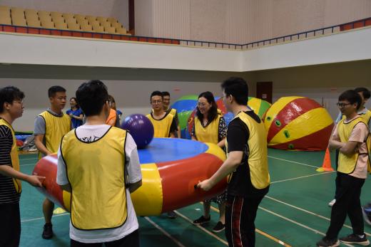 为热烈庆祝中国共产党成立100周年,进一步丰富师生校园文化生活,营造团结协作、拼搏向上的学院氛围,5月28日,能源与动力学院在明故宫校区体育馆举办“奋进路·新征程,献礼建党100周年”师生趣味运动会。能源与动力学院领导班子及师生代表组成7支参赛队伍共计150人参加此次活动。