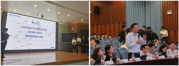 本届大赛以“安全、智慧、高效、便捷、绿色”为主题,联合中国国际航空、东方航空江苏公司、春秋航空公司、顺丰航空公司、吉祥航空公司共同举办。初赛以各航空公司为组别进行志愿填报,受到了来自民航学院、通用航空与飞行学院、经济与管理学院、艺术学院、外国语学院等10个学院共三十余支队伍近300名学生的关注与参与,最终10支队伍过关斩将,挺进决赛。在答辩现场,各参赛队伍的同学们化身航空公司CEO以PPT、视频等新颖的形式展示了自己设计的航空公司,以独具一格的思维解答了航空公司提出的企业课题,获得了评委老师的一致好评。