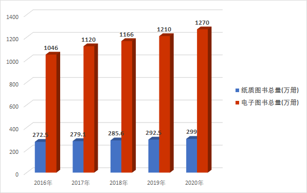 资源是图书馆的根基所在,也是学校教学科研赖以生存发展的厚土。五年来,图书馆紧密结合学校的学科发展需求,坚持纸质资源和电子资源并重,持续加大电子资源建设力度。目前,馆藏纸质图书总量达到299余万册,电子型文献资源总量达1270余万册,中外文电子数据库160余个。同时,根据学校学科建设及教学科研情况,图书馆合理制定资源建设方案,重点保障学校的优势学科及潜力学科的资源配置。