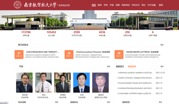 为保障学校特色学科发展,图书馆进一步加强特色文献的采集和收藏,打造特色鲜明的文献资源保障体系。先后建设了“南航博硕士学位论文全文数据库”“南航教学参考书数据库”“南航文库”“南航会议”等特色库。为配合南航直升机协同创新计划等重大特色项目的发展需要,“直升机特色资源库”“南航机构知识库”“南航发动机图纸数据库”也先后建设完成。目前正在建设的“航空发动机知识服务平台”,聚焦国家重大科技专项研究,助力我校在航空发动机方向的基础研究,为我校航空航天领域高层次人才的培养和科学研究提供了重要的支撑与保障。