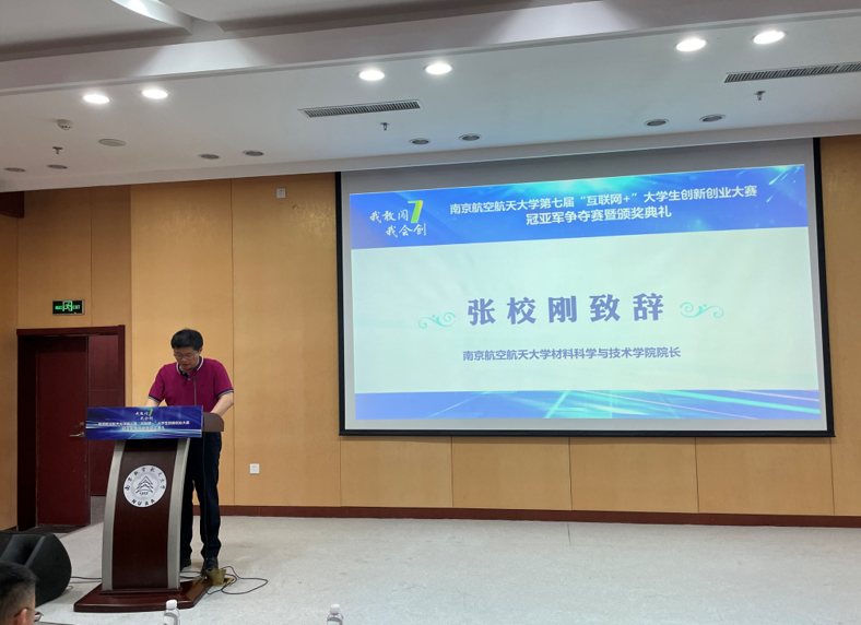 张校刚首先致辞,他对材料科学与技术学院能够承办本届校赛表示荣幸。中国国际“互联网+”大学生创新创业大赛是李克强总理亲自倡导发起,由教育部联合十三部委和地方人民政府共同主办的最具影响力的双创顶级赛事。材料科学与技术学院在历年“互联网+”大学生创新创业大赛的赛场上获得了较好成绩,他希望参赛团队能够在本届校赛的舞台上赛出风采、赛出精神,真正做到以赛促学、以赛促教、以赛促创,学院也会持续为“互联网+”大学生创新创业大赛贡献力量。