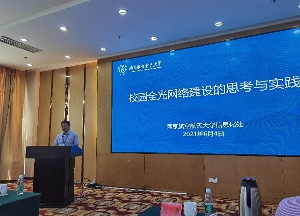6月4日,我校信息化处副处长刘勇应邀参加了2021中国教育和科研计算机网华东北地区教育信息化技术研讨大会,并作了《校园全光网络建设的思考与实践》的专题报告。刘勇从全光网络建设背景、全光网络技术特点、南航全光网络实践及校园网络未来展望四个方面分享了我校全光网络建设的规划与举措,赢得了兄弟院校和同行专家的高度认可。