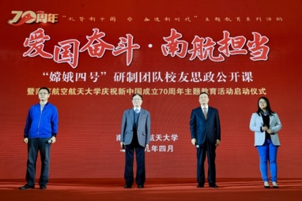 传承红色爱国基因,追逐蓝色航天梦想。实施名师思想引领,落实校党委提出的向“人民科学家”、我院院长叶培建院士学习的要求,叶培建院士、孙泽洲总师等做客学校“爱国奋斗南航担当”嫦娥四号研制团队校友思政公开课,邀请戚发轫院士、常进院士、孙泽洲总师等20余位航天领域专家开展航天精神主题讲座。做好教师课程思政,申报成功首批工信部校企协同育人基地,参与承办全国“航空航天概论”课程建设会,叶培建院长领衔主讲教育部课程思政示范课程——《航天工程概论》。打造思政工作品牌,学院 “一分钟”思政工作室推出弘扬正能量的微视频作品200余部,获高校校园文化建设优秀成果一等奖等国家级荣誉8项、江苏省宣传思想文化工作创新奖等省部级荣誉20余项、出版视频集锦2部。通过思政教育,航天精神深入学生心中,近两年学院毕业研究生就业率达100%,国防单位就业率超过73%。