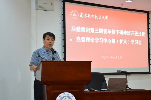 为进一步加强集团内涵建设,提升人才队伍素质,推动集团各项事业再上新台阶,2021年6月9日,后勤集团在明故宫校区举行第三期青年骨干研修班开班式暨党委理论学习中心组(扩大)学习会。全体集团领导、各中心主任助理及以上干部、全体党员、第三期青年骨干研修班全体学员参加会议,会议由集团副总经理王国军主持。
