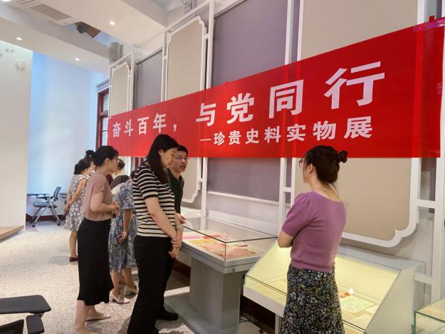 举办“奋斗百年,与党同行”——珍贵史料实物展