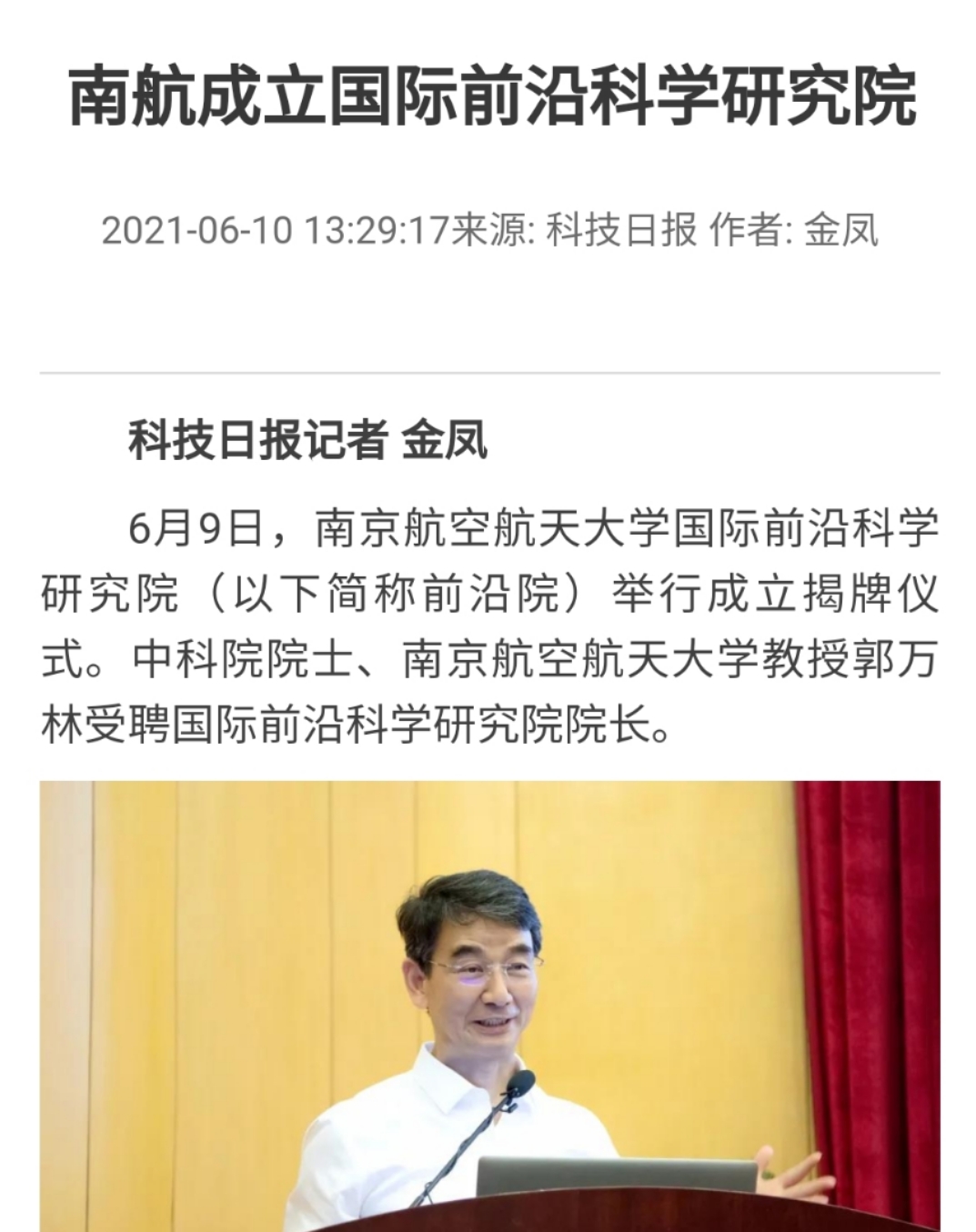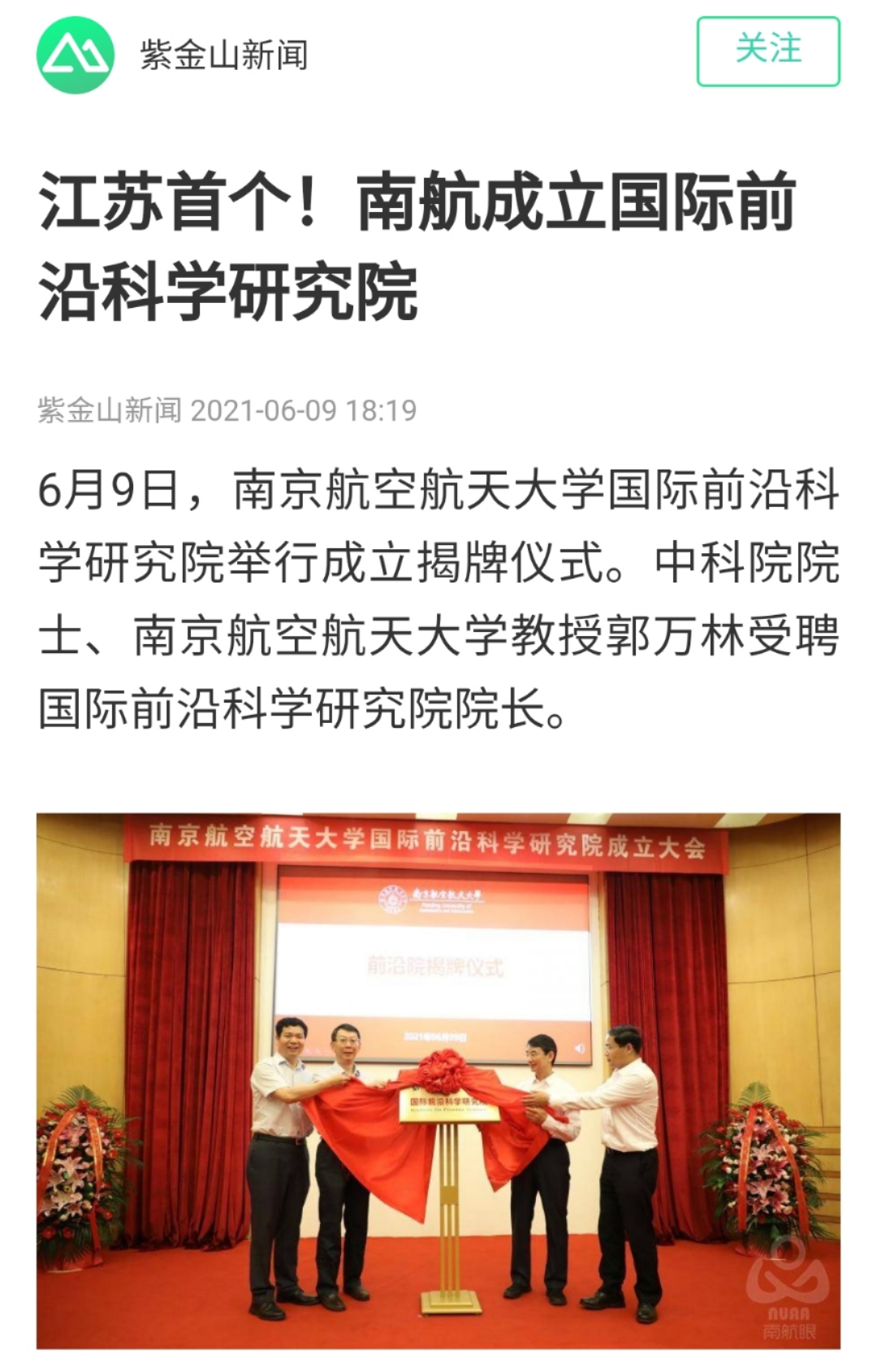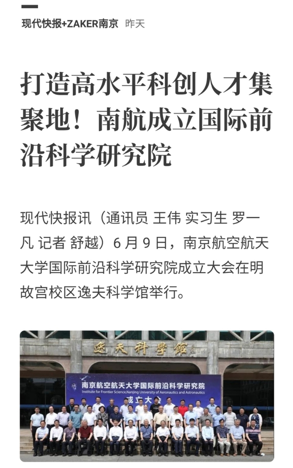 现代快报:打造高水平科创人才集聚地!南航成立国际前沿科学研究院