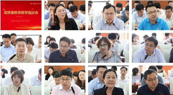 座谈会上,11位教师代表依次发言。大家对学校“十三五”以来事业发展成就感到自豪、对学校高度重视和关心教学、教师表示感谢,并结合工作实际,从思政课建设、课程思政、产教融合、研教融合、体育、美育、劳育、公共基础课、留学生教育、研究生教育等方面提出了有针对性的宝贵意见和建议。