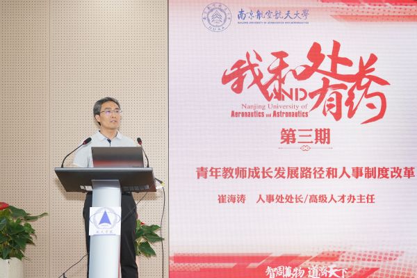 6月11日,“我为教师办实事”之“我和处长有约”第三期在将军路校区航天学院501报告厅举行。人事处处长、高级人才办主任崔海涛教授作为主讲嘉宾,围绕“新形势下人才项目申报的政策解读”这一主题,帮助青年教师明晰进校后的成长发展路径,并针对大家关心的人事制度改革有关疑问进行详细解答。通过开展宣讲,与教师面对面答疑解惑,切实践行“围绕师生,关注师生,服务师生”,将人事工作赋予更多温度与情感。