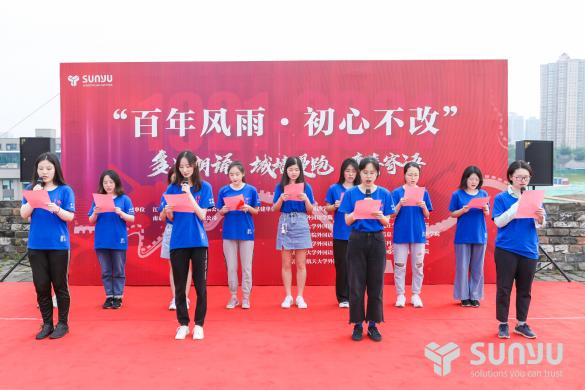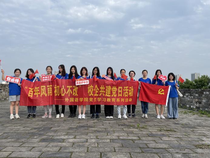 为热烈庆祝中国共产党成立100周年,大力营造团结奋进、开创新局面的浓厚社会氛围,6月20日上午,外国语学院学生党总支受邀参加江苏省舜禹信息技术有限公司“百年风雨、初心不改”校企共建党日活动。此次活动由本科生联合党支部书记、辅导员盛嘉贤带队,党员代表出席。