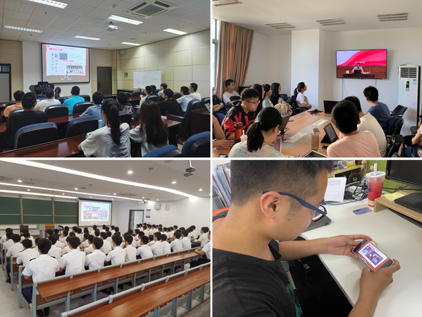 校党史领导学习教育领导小组及办公室成员代表全校新发展学生党员、学生工作人员、学生党员骨干培训班及教务处党支部全体成员等600多人参加了报告会。此外,有2000多名师生党员通过视频直播观看了报告会。