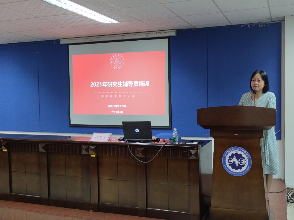 为进一步加强研究生辅导员队伍建设,着力提升研究生专兼职辅导员理论水平、业务能力和工作成效,研工部组织开展研究生辅导员系列专项培训。6月22日下午,在明故宫校区15号楼522报告厅举行培训首场讲座,邀请学校心理健康教育中心主任杨雪花做《研究生的心理健康状况及主要心理问题识别与对策》专题讲座。校党委研工部部长张启钱、研工部副部长王亚彤以及各学院新聘研究生导师、专兼职辅导员共120余人参加了本次培训,培训由王亚彤主持。