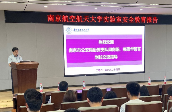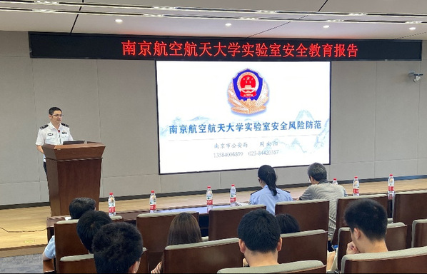 6月24日下午,南京市公安局危化品管理专家、公安部爆炸物品安全监管教育训练讲师团成员周向阳警官应邀来我校作题为“南京航空航天大学实验室安全风险防范”的专题讲座。航空学院、能源与动力学院、机电学院、材料科学与技术学院、理学院等学院领导、实验室负责人、学生代表200余人参加讲座。讲座由国有资产管理处处长孙占久主持。