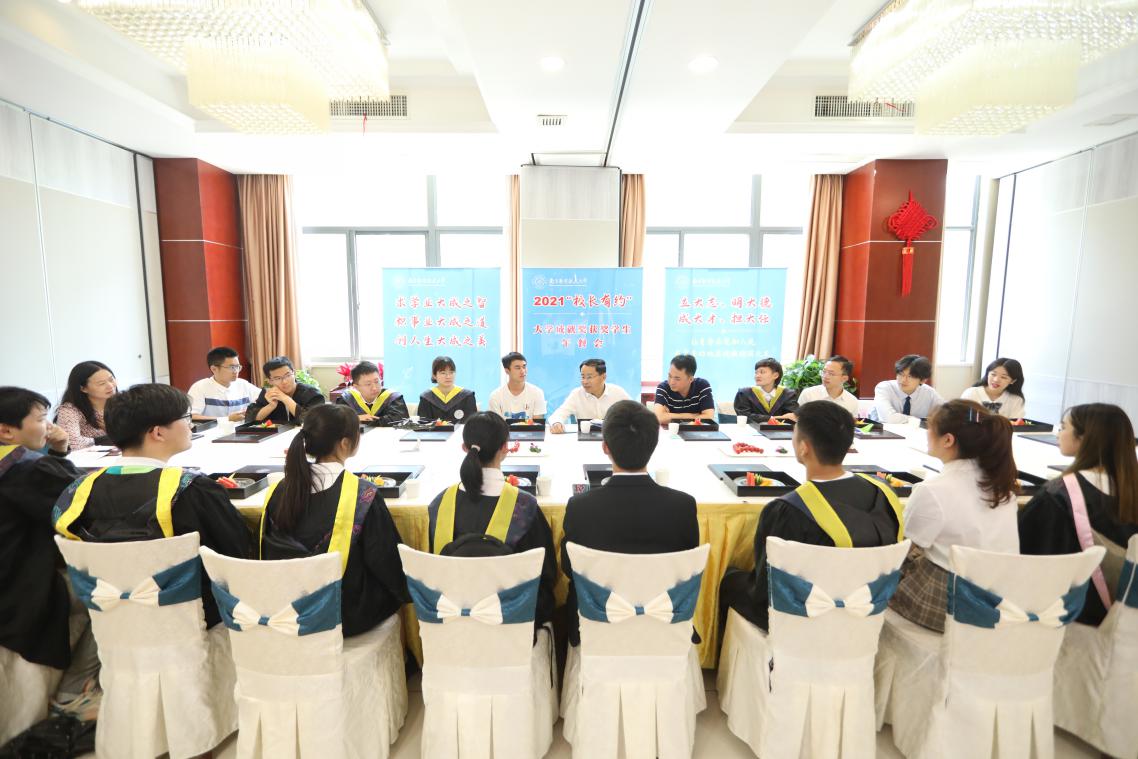6月23日中午,“校长有约”之大学成就奖获奖学生午餐会在明故宫校区举行,校长单忠德院士与2021届本科毕业生大学成就奖及提名奖获奖学生共话成长成才。学生处处长侍旭、副处长张亚丽参与了活动。