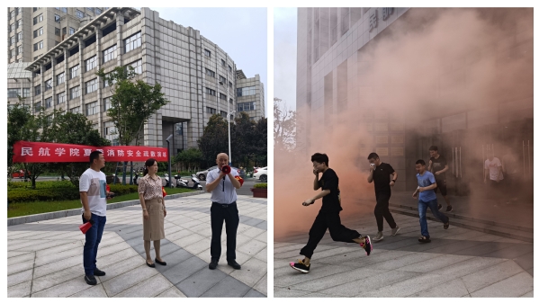 随着本次演练总指挥、民航学院党委书记刘建成发出“演练开始”的指令,大楼消防警报立刻响起。师生们在各楼层调度员的指挥下,用湿毛巾捂住口鼻,弯着腰,按照应急预案确定的逃生路线,迅速有序地顺着安全通道撤离,在最短的时间内全部到达疏散集结地,演练活动达到了预期的效果。