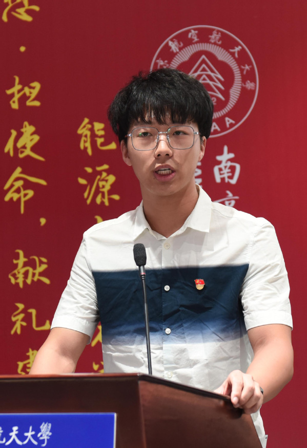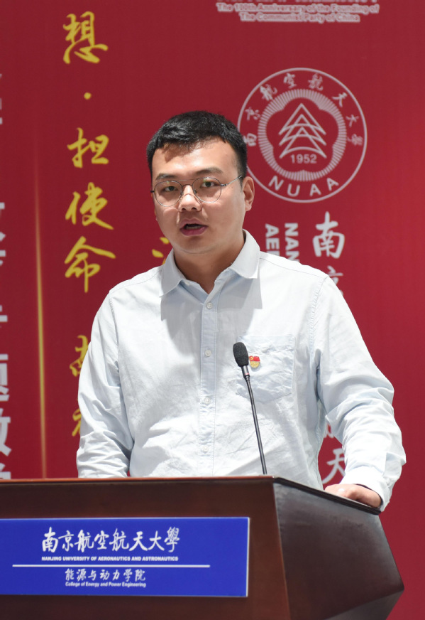 驭风排气系统纵向党支部书记黄帅作为支部书记代表在学校表彰大会上发言。他表示,学院驭风排气系统纵向党支部是全国400多万个党支部之一,支部虽小,但梦想很大。锻造一颗强劲、可靠的中国心,为祖国筑牢空天钢铁长城,是支部成立的初心,更是支部每位同志的历史使命。展望未来,他渴望继续在南航奋斗,继续和有“驭风”梦想的人一起,为南航的“双一流”建设、祖国的航空发动机事业和中华民族伟大复兴贡献全部力量。