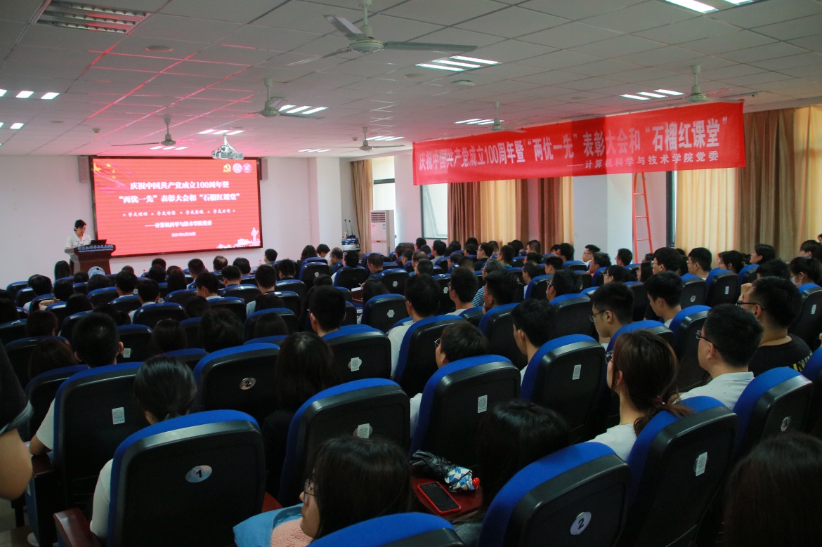 在庆祝中国共产党成立100周年之际,为表彰先进,树立典型,扎实推进党史学习教育,激励全院各党支部和共产党员勇于担当作为、充分发挥表率作用,不断开创工作新局面,6月28日,计算机学院党委在学院报告厅举办庆祝中国共产党成立100周年暨“两优一先”表彰大会和“石榴红课堂”,学院师生党员近200人共同参加。本次活动由学院党委副书记管祎主持。