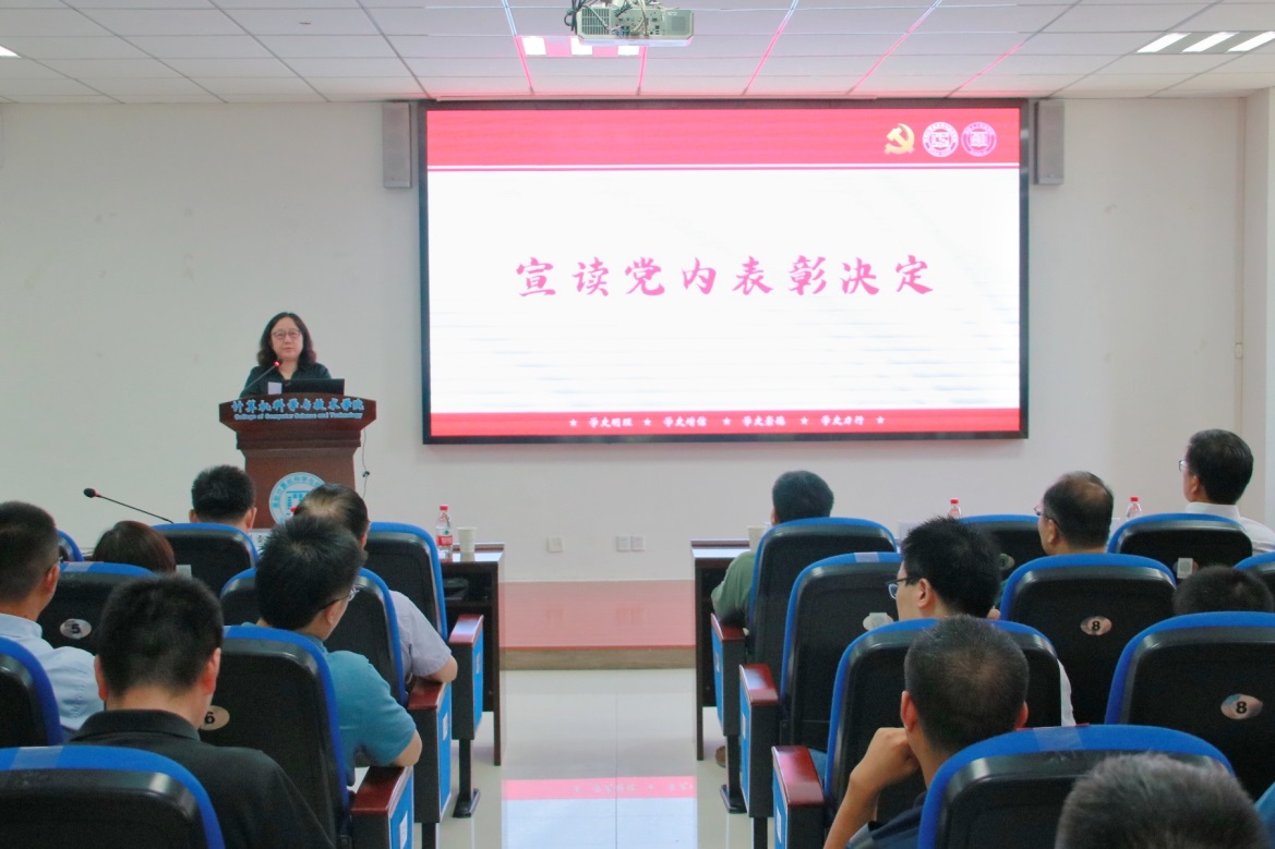 会议伊始,学院党委书记刘健荣宣读了《中共南京航空航天大学计算机科学与技术学院委员会关于表彰2021年先进基层党组织和优秀共产党员、优秀党务工作者的决定》。刘健荣指出,希望受表彰的先进集体和个人珍惜荣誉、再接再厉,始终保持昂扬斗志和扎实作风,努力在新起点上再创佳绩;各党支部和广大党员要以受表彰的单位和个人为榜样,坚定理想信念,赓续红色血脉,发挥战斗堡垒和先锋模范作用,深入贯彻落实立德树人根本任务,为实现中华民族伟大复兴的中国梦持续贡献力量。