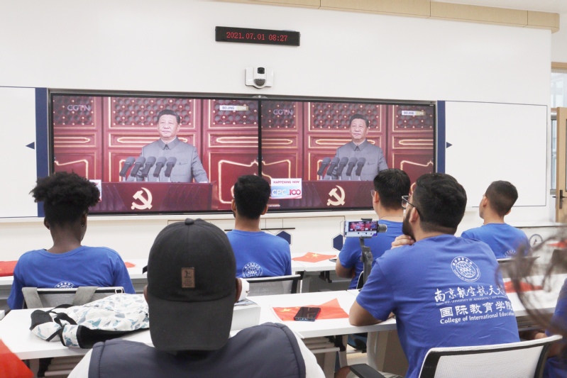 在场的留学生们纷纷表达心声,来自也门的硕士生木吉布表示,听完习近平总书记的讲话他非常激动,作为从本科起就在南航就读的留学生,他见证了中国人民不断提升的美好生活,他也感激中国和南航为他所提供的优良学习和生活环境。祝愿伟大的中国共产党生日快乐,祝愿中国共产党领导下的中国越来越好。
