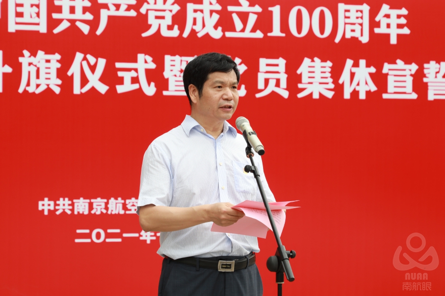 校党委书记郑永安,党委副书记陶勇、刘宇雷分别在三个校区作了讲话。讲话指出,站在“两个一百年”的历史交汇点上,面对红色旗帜,要更加深刻感受到奋斗的方向来自信仰的坚守,坚定党旗所指就是奋斗所向。要更加深刻感受到奋斗的价值在于与祖国同行,坚定航空报国、献身国防的信念,践行“为党育英才,为国铸重器”的光荣使命。要更加深刻感受到奋斗的梦想成于实干的砥砺,全体教师要做大先生,做为学、为事、为人的楷模,青年学子要立大志、明大德、成大才、担大任,努力成为堪当民族复兴大任的时代新人,要用自己的实际行动,为加快建设特色鲜明的世界一流大学、服务支撑高水平科技自立自强、实现中华民族伟大复兴贡献南航智慧和南航力量,以优异成绩为党旗添彩、为国旗增色!