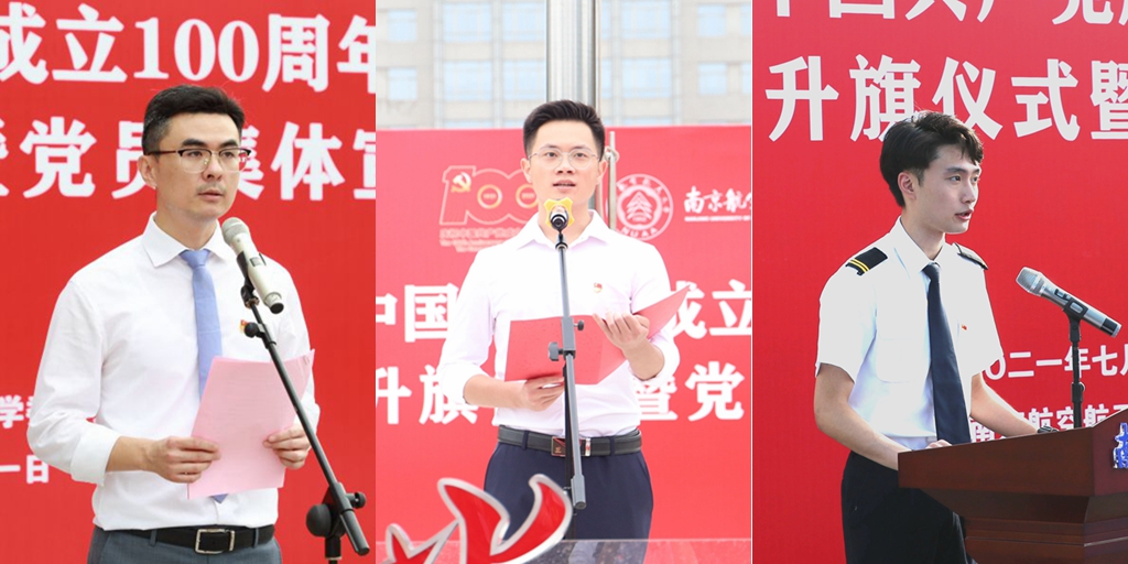 航空学院青年教师陈肇麟、理学院学生孙炳阳、通用航空与飞行学院学生李衍熹作为新发展师生党员代表分别发言,共同讲述了中国共产党百年奋斗历程,表示党员不仅仅是一个身份,更是一份沉甸甸的责任,将在学思践悟中坚定理想信念,在奋发有为中践行初心使命,用实实在在的行动,发挥党员先锋模范作用,传承红色基因,赓续精神血脉,彰显中国共产党人的责任担当。