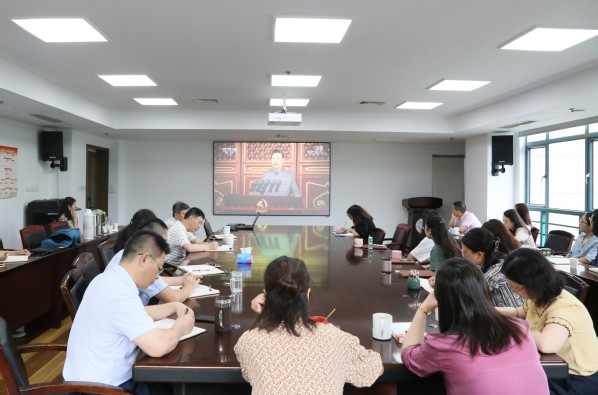 2021年7月1日上午8点,教务处党支部组织全体教职工集中收听收看庆祝中国共产党成立100周年大会直播。直播结束后,支部书记孔垂谦立即组织学习讨论,交流心得体会。