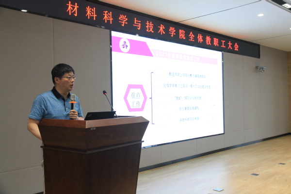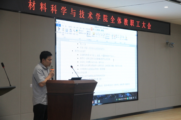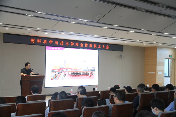7月5日下午,材料科学与技术学院召开全体教职工大会,深入学习贯彻习近平总书记“七一”重要讲话精神,动员部署学院暑期和下半年重点工作。会议由学院党委书记石勇主持,学院领导班子全体成员、全体教职工参加了本次会议。