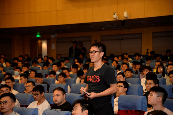 在交流互动环节,单忠德为学生们答疑解惑,勉励研究生抢抓时代机遇,传承南航精神,珍惜在校期间的宝贵学习资源,刻苦钻研、精益求精,充分发挥科研生力军作用,积极投身于全面建设社会主义现代化强国的伟大征程。