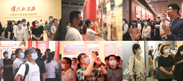 纪念馆中,庆祝中国共产党成立100周年精品展览“伟大的开端——中国共产党创建历史陈列”分为七个板块,师生一行人在讲解员的带领下,先后参观了“历史选择 伟大起点”、“前仆后继 救亡图存”、“民众觉醒 主义抉择”、“早期组织 星火初燃”、“开天辟地 日出东方”、“砥砺前行 光辉历程”与“不忘初心 牢记使命 永远奋斗”等展厅,系统回顾了中国共产党的百年奋斗史。