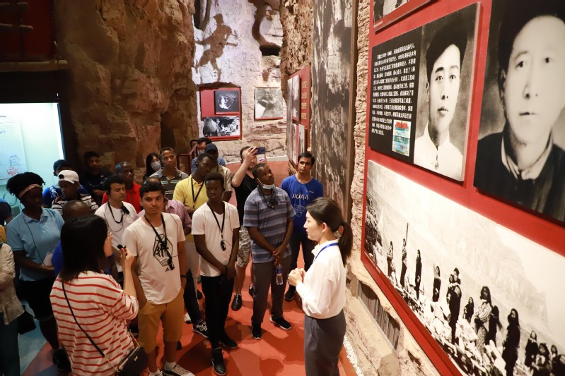 留学生在历史图片、视频资料和实物展示前看得专注、听得认真,不时发出阵阵惊叹。来自贝宁的留学生马利克深有感触地说道:“林州人们修建红旗渠的精神让我感到震撼,他们身上不怕困难、乐于奉献的精神是我们要学习的。我不得不感叹中国共产党在带领中国人民谋幸福的艰难过程中不断克服困难、创造奇迹,真的非常伟大,我很佩服中国人。”