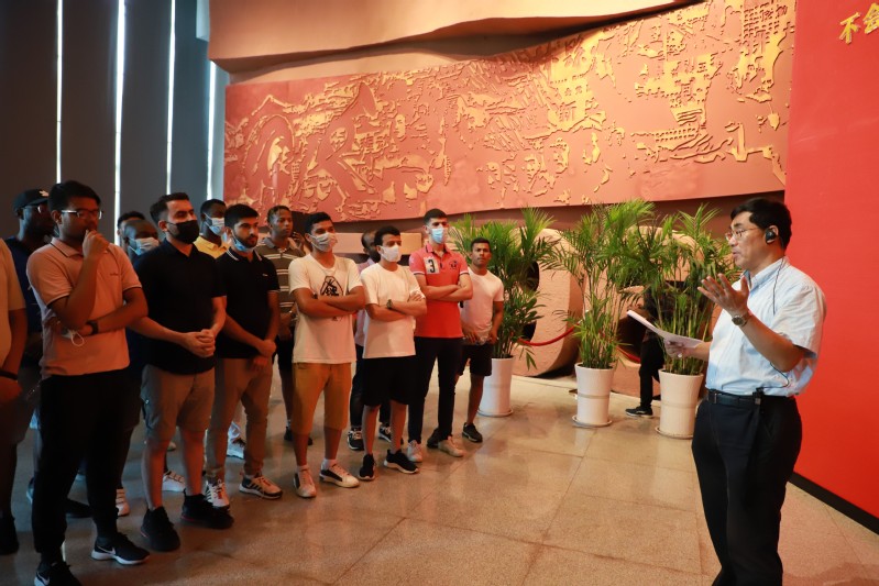国际教育学院院长金泉元在红旗渠纪念馆给留学生上了一堂生动的红旗渠精神文化课。金泉元动情地说道:“我们跨越近千公里来到河南林州,来到红旗渠,就是要亲身感受‘自力更生、艰苦创业、团结协作、无私奉献’的红旗渠精神,希望同学们仔细了解修建红旗渠的历史,深刻领会红旗渠精神,进而鼓舞自己、克服学习和生活中的各种困难,不断提高自己。”他鼓励留学生在学好专业技能的同时,多走走看看,更加深入地了解真实的中国,向世界讲好中国故事、传播好中国声音,成为促进中外友好交流的“民间大使”。