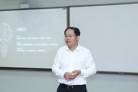 本次结课答辩由分组汇报、问辩和交流等三个环节组成。汇报环节中,同学们结合课程内容,就复合材料数字化三维编织、增材制造技术、智能工厂等十二个智能制造前沿课题进行了分组汇报,涵盖基本概念、文献梳理、研究现状、应用研讨等方面,并针对部分重点难点课题提出了解决思路和技术设想。