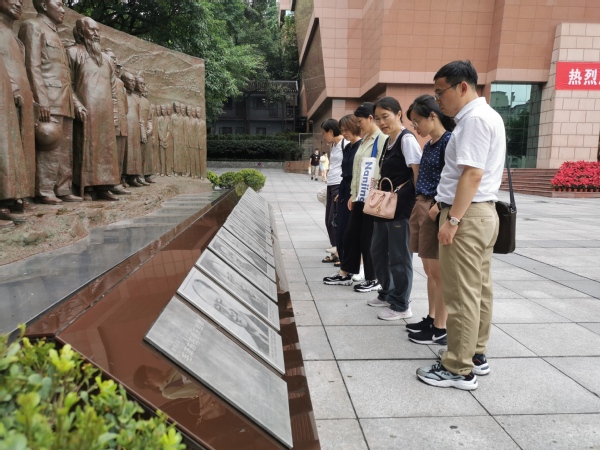 为巩固党史学习教育成效,将党史学习推向深入,加深对党的精神谱系的学习研究,7月14日,外国语学院党委联合院“外语教学与立德树人研究中心”组织部分党员教师、入党积极分子赴重庆革命教育基地,开展“追忆红岩精神,坚守初心使命”主题教育活动。学院副院长姜礼福带队进行。