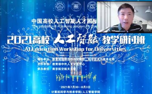 7月30日至8月3日,“中国高校人工智能人才国际培养计划”2021高校人工智能教学研讨班(南京航空航天大学)成功举办。本次研讨班由教育部国际合作与交流司、科学技术与信息化司指导,教育部中外人文交流中心主办,南京航空航天大学承办。来自南京大学、复旦大学、西安电子科技大学等全国近50所高校的100余名教师参加研讨班并顺利结业。