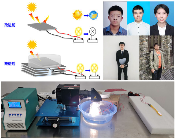 荣获一等奖的项目“余晖尽、电不止—快速捕捉太阳能全天候温差发电装置”由刘向雷教授指导,团队由研究生宋亚楠、王浩蕾和本科生陈威屹、吴荣、刘宇轩组成。野外生存或太空供电时,以太阳能为热源驱动的温差发电装置产电量易受太阳能资源随时间和空间变化影响,项目装置采用具有高导热、高吸光能力、高储热密度的仿生氮化铝-氮化钛-石蜡复合相变材料作为中间储/传热介质,用于吸收太阳能转化的热量并供给温差发电装置以产生可持续的电能。该设计以太阳能为直接驱动能源并通过仿生型复合相变储热材料转化、储存和释放持续稳定的热量,克服了原有温差发电装置易受太阳能资源波动影响而不稳定、不持续发电的技术难点。单片寿命内可节省标煤30kg,减少二氧化碳排放96kg、硫化物氮氧化物排放8.2kg,有效助力节能减排。