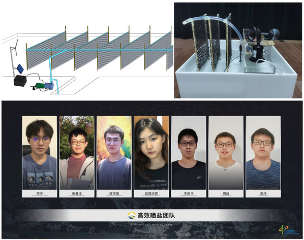荣获二等奖的项目“基于降膜蒸发的反馈调节风光互补晒盐系统”由史波教授指导,团队由本科生邓冲、张鑫泽、缪祺阳、欧阳汭霖、李新华、周旭、王炜组成。团队基于降膜蒸发技术,结合单片机根据盐场温湿度及风速变化实时控制水泵功率,设计了用于盐田生产的高效晒盐系统。同时,结合模型实验数据以及对莺歌盐场的社会调研实际,对方案的盐产率及生产经济效益进行了估算,发现方案的盐产率和生产效益相比目前传统晒盐业有了显著提高,且制作成本较低,回收成本周期不到一年,每年净利润可提高4.5倍,相同盐产量下能耗比其他加速晒盐方法低98%。对比其他晒盐技术具有能耗低、成本低、收益高的优势,具有推广与应用价值。