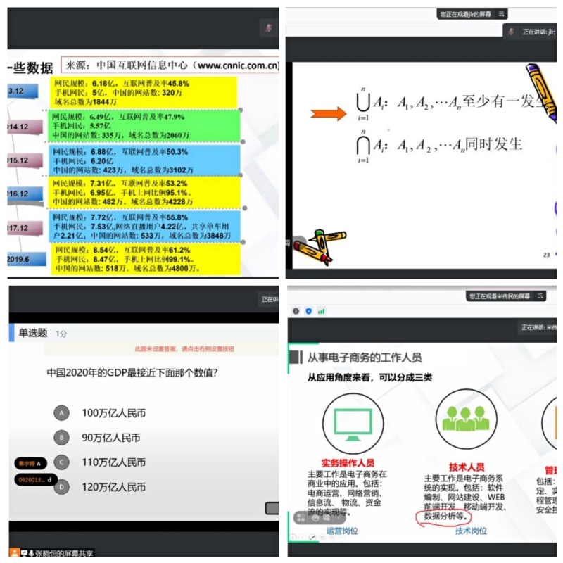 在王敏老师《电子商务概论》线上教学正式开始前,院党委书记苏州给学生们送去了亲切问候,提醒大家在注意防疫措施的同时,集中精力投入学习,提升自我学习、自我管理、自我监督的效率,并叮嘱学生们有实际困难及时和学院联系反馈。