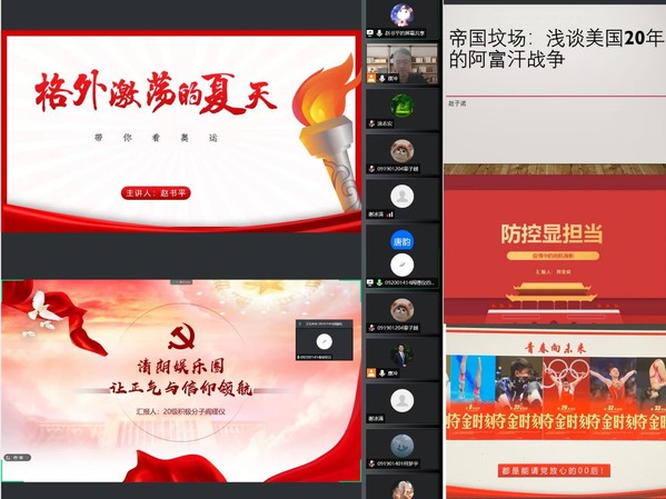 沙龙由主题发言和圆桌论坛两个部分组成,在主题发言环节,五位主讲学生结合自身假期所思所感和研究方向,针对疫情防控、奥运盛会、西藏和平解放70周年、阿富汗战争、清朗娱乐圈进行了主题分享。刘金良以《防控显担当——疫情下的南航身影》为题,结合自身投身经管学院疫情防控党员先锋队的经历,讲述了在南京、在南航志愿参与核酸检测、后勤志愿、情况摸查的先进事迹,诠释了疫情面前“没有从天而降的英雄,只有挺身而出的先锋”。赵书平则以《带你看奥运——这个夏天,有点格外激荡》入手,带大家回顾了中国奥运的风雨百年路,畅谈东京奥运上同为“00后”运动员的精彩表现与可颂精神,倡议同学们要争做可以请党放心的00后,在自己的领域实现报国之志。卓玛曲吉为同学们分享了《雪域欢歌70载,西藏启航新时代》的感人故事,她通过讲述百万翻身农奴之一的爷爷、奋力改变命运的父亲、新时代学生党员的自己这三代人的故事,指出家族命运变化的背后是中国共产党强有力的正确领导以及“一步跨千年”的社会主义制度历史性飞跃。赵子诺以《帝国坟场——浅谈美国20年的阿富汗战争》为题,与大家分析了美国入侵阿富汗的前世今生,并针对“为什么阿富汗能成为帝国坟场”“美国为什么入侵阿富汗”等一系列问题进行探讨,一步步剖析“普世价值”的虚伪本质以及美式民主的局限性。阎瑾仪从娱乐圈专项整治行动入手,交流了对《清朗娱乐圈,让正气与信仰领航》认识和理解,她从饭圈文化到明星案件,直击“泛娱乐化”“苦流量已久”的社会痛点。此外,她着重强调“信仰”的力量,并对创建一个充满正气的社会充满希望。