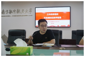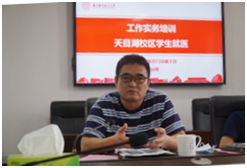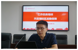 开班仪式结束后,天目湖校区部分驻区单位负责人分别从校区教学管理、财务报销、学生就医、后勤保障、安全保卫、场馆借用及实地参观等方面为新入驻辅导员进行了专题业务培训。