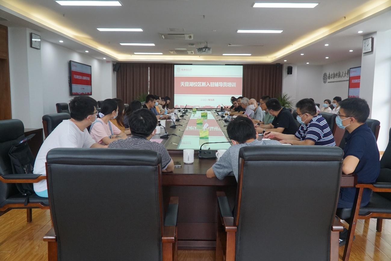 为使新入驻天目湖校区辅导员尽快熟悉校区环境、了解驻区部门业务、做好迎新准备工作,9月3日下午,天目湖校区新入驻辅导员培训在综合服务楼301会议室正式开班。天目湖校区全体领导、各办公室工作人员、部分驻区单位工作人员参加开班仪式。9名新入驻辅导员参加培训。开班仪式由校区党工委副书记贡海俊主持。